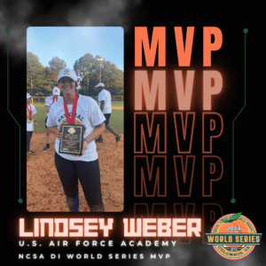 Your 2024 NCSA Division I World Series MVP is Senior Lindsey Weber from the U.S. Air Force Academy! Not only did Lindsey excel all tournament long, she hit a game tying single with two outs in the bottom of the 7th inning to tie the game up at 1. Air Force eventually finished the job in the bottom of the 8th to claim the National Championship.