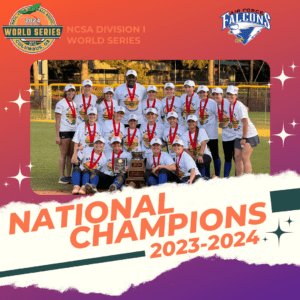 The 2024 NCSA Division I National Champions are the United States Air Force Academy Falcons! They defeated Illinois twice in the Championship Round to capture their first ever NCSA National Championship! In the winner take all game, Air Force hit a walk off single in the bottom of the 8th inning to win 2-1!