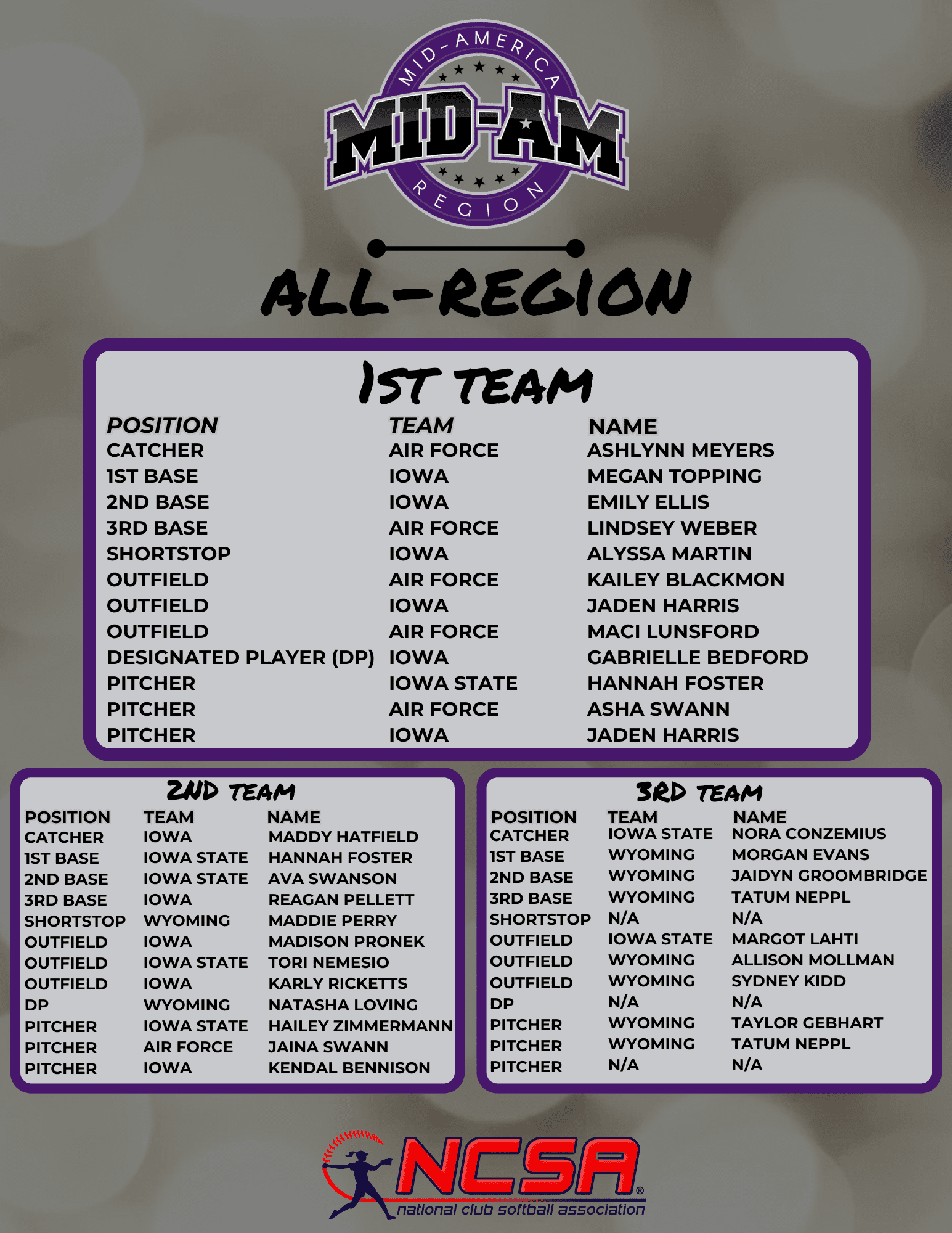 Congratulations to all those who earned 1st, 2nd and 3rd Team honors on the 2023-2024 Great American All-Region Teams!